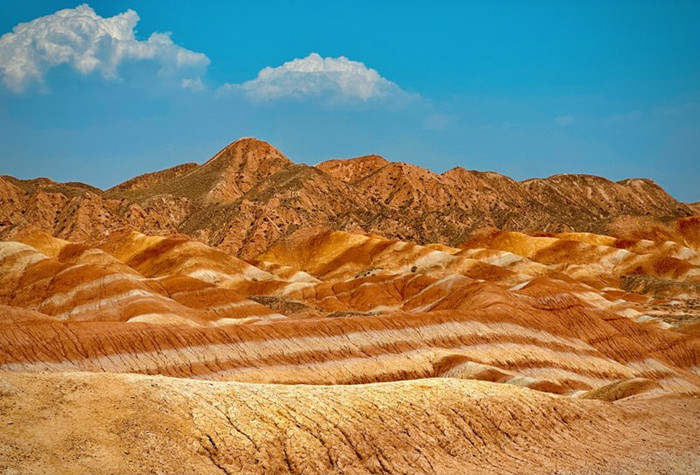 张掖丹霞地貌地质公园的“彩虹山”是数百万年的地质活动对景观的影响的显著例子。