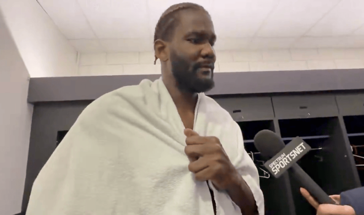 赛后,湖人中锋德安德烈-艾顿接受采访,谈起了球队今天面对多人缺阵、又是背靠背比赛时仍然拿到胜利的表现。