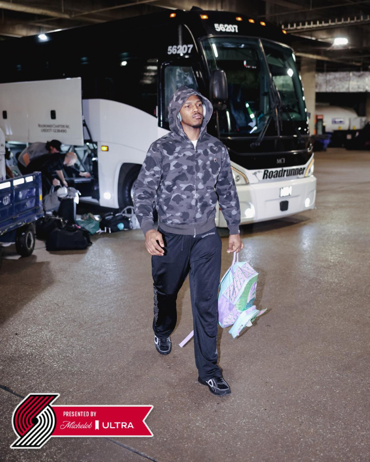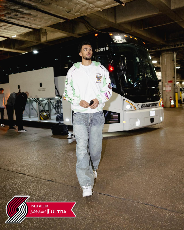 开拓者ins报道。波特兰开拓者队发布ins称周日时尚造型。