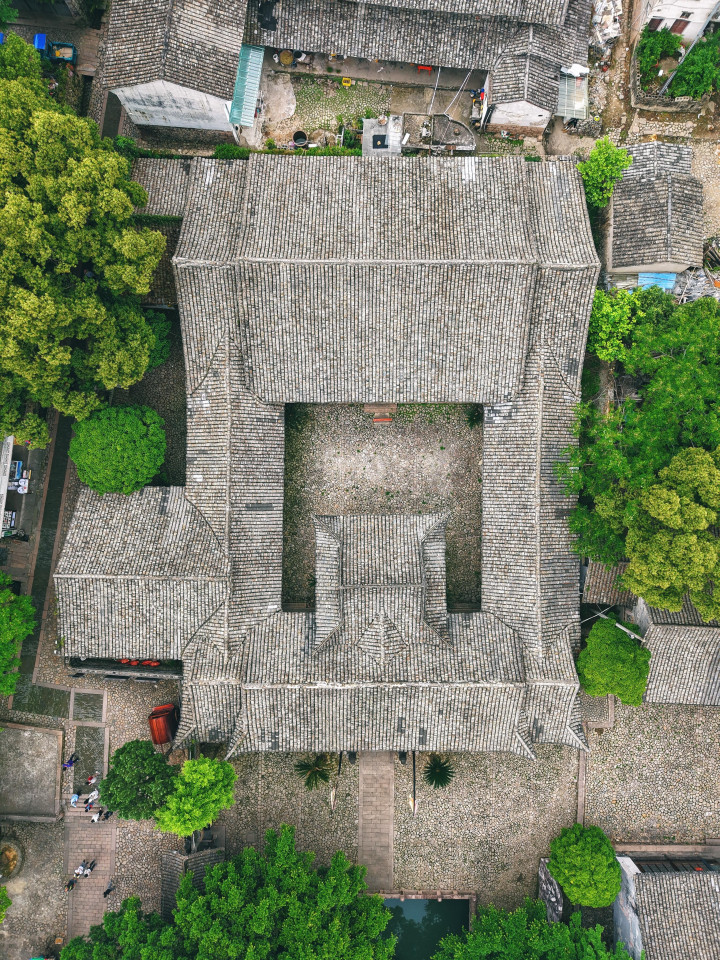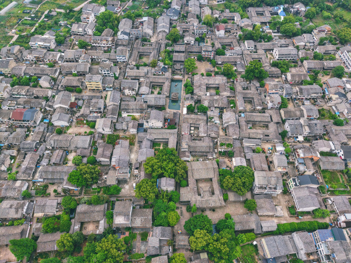 从高空俯瞰,芙蓉古村方正而规整,犹如一座精心雕琢的城池。它坐西朝东,四周被卵石砌成的寨墙环绕,像是一位历经沧桑的老者,静静地守护着这片古老的土地。据说,这些寨墙是元代重建的,虽历经风雨,却依然坚固。在冷兵器时代,它们曾为村民们抵御外敌,如今,虽已不再承担防御的重任,却成为了古村历史的见证者。