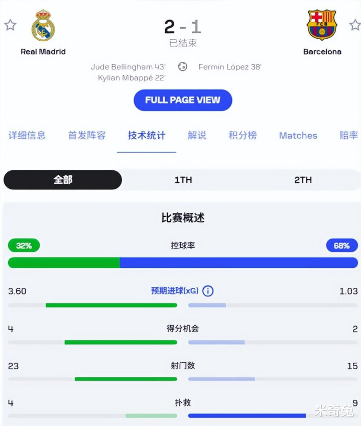 虽然说皇马预期进球高达3.6跟获得点球有关系,不过他们的确创造出了远比巴萨更多的得分机会。