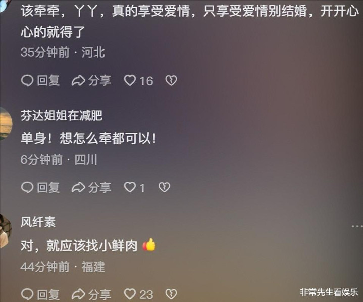 这届粉丝是真想开了,离了婚的女明星凭什么不能追求幸福?而且就是要找年轻的、帅气的,看着都养眼。