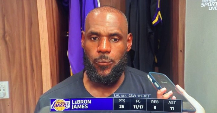直播吧4月10日讯NBA常规赛,湖人客场119比103击败勇士。赛后詹姆斯接受了采访。