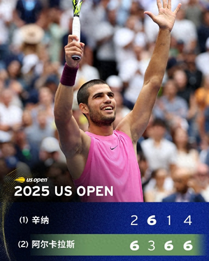 直播吧09月08日讯 美网男子单打决赛,前赛会冠军、2号种子阿尔卡拉斯以6-2/3-6/6-1/6-4力克卫冕冠军、头号种子辛纳,夺得2025美网男单冠军!