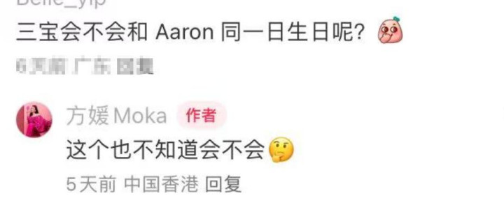 要知道本月26日就是郭富城生日了,为此,有网友猜测三宝该不会和郭富城同一日生日吧,没想到方媛还回应了,她表示:“这个也不知道会不会”,想来她三胎是准备顺产,不然剖腹产肯定是早预约好手术日期了。