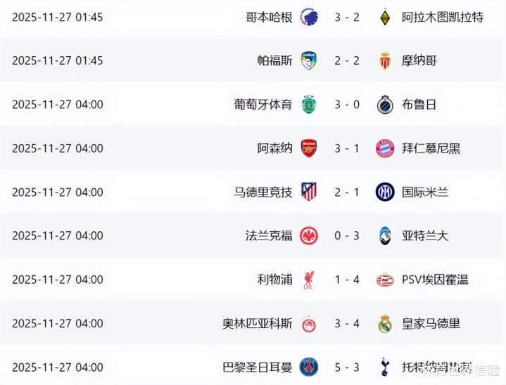 另外几场比赛,帕福斯2-2战平摩纳哥,葡萄牙体育3-0胜布鲁日,法兰克福0-3负亚特兰大。